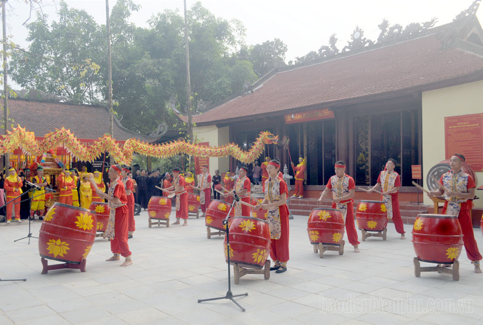 Màn trống hội trong chương trình nghệ thuật Lễ hội Thành Bản Phủ.
