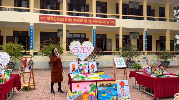 Đặc biệt, tổ giáo viên chuyên (Âm nhạc, Mĩ thuật, Thể dục, Tin học, Tiếng Anh) đã mang đến những sản phẩm tích hợp liên môn đầy mới mẻ như nhạc cụ tái chế, tranh sáng tạo theo chủ đề khoa học, trò chơi vận động kết hợp kiến thức STEM, sản phẩm lập trình và thiết kế số. Các thầy cô không chỉ hướng dẫn mà còn trực tiếp đồng hành cùng học sinh trong quá trình hình thành ý tưởng và hoàn thiện sản phẩm.