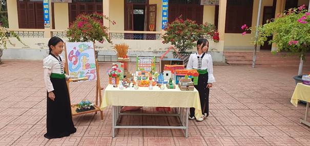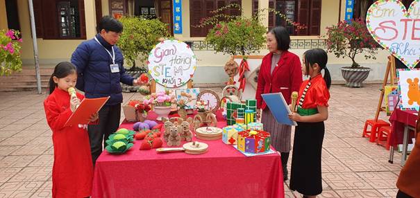 Ngay từ sáng sớm, khu vực trưng bày đã được chuẩn bị chu đáo, bố trí khoa học và hấp dẫn. Các gian hàng được trang trí sinh động, thể hiện rõ ý tưởng, mục tiêu và quá trình thực hiện sản phẩm của từng khối lớp.