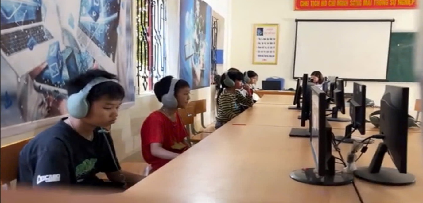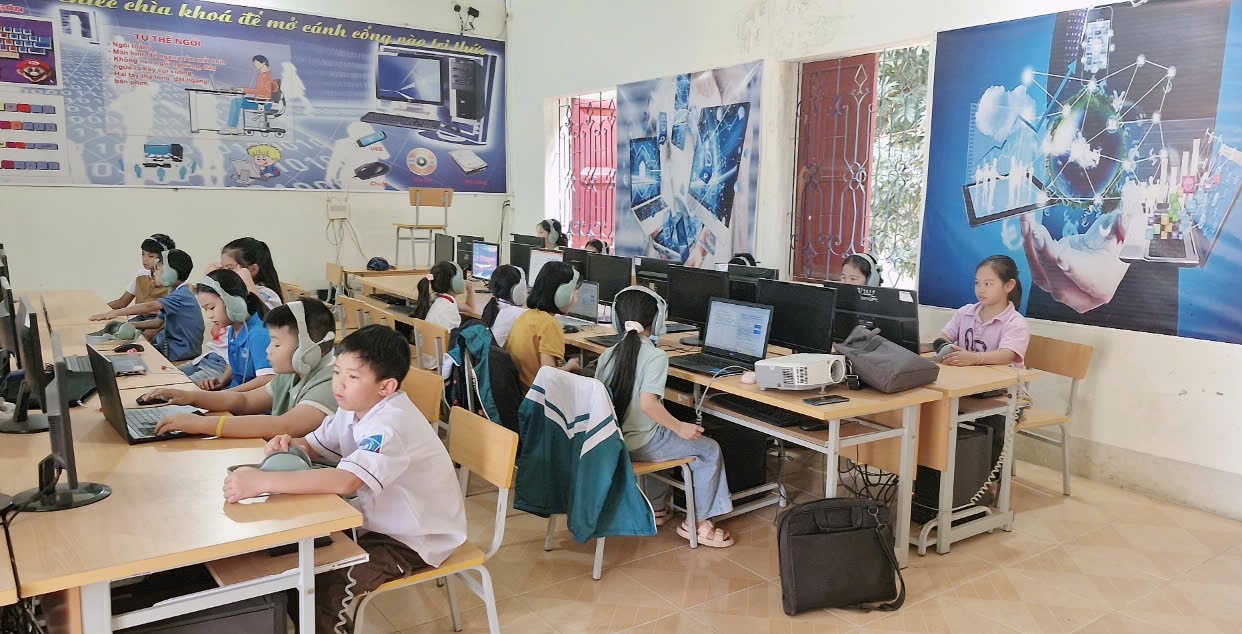 Ảnh: Học sinh tham gia thi IOE tiếng Anh cấp trường.